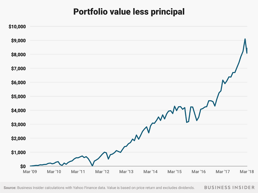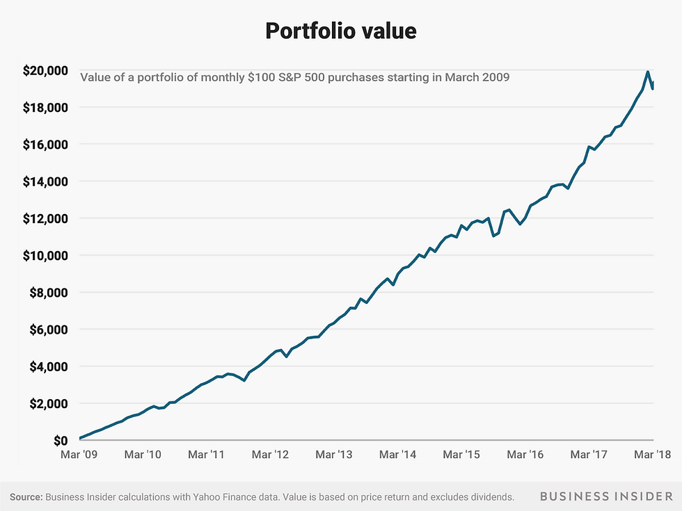 One way to look at the stock market's incredible nine-year comeback is to consider an investing thought experiment: How much would you have if you bought $100 of an S&P 500-tracking index fund every month starting in March 2009?
