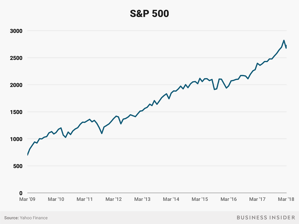 The stock market hit its financial-crisis bottom 9 years ago — here's how much you'd have ma